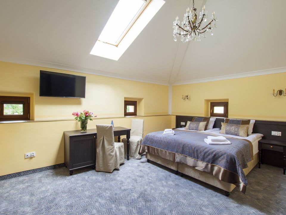 Oferujemy wygodne, klimatyzowane pokoje jedno- i dwuosobowe typu DBL i Twin w budynku pałacu oraz w Domu Agronoma, klimatyzowaną salę konferencyjną z wyposażeniem, klimatyzowane sale restauracyjne oraz strefę SPA z sauną suchą, fińską, jacuzzi, grotą solną z tężnią oraz gabinetem masażu. Z dala od wielkomiejskiego zgiełku, w otoczeniu pałacowego parku zapewnimy Państwu komfortowy i satysfakcjonujący pobyt firmowy.